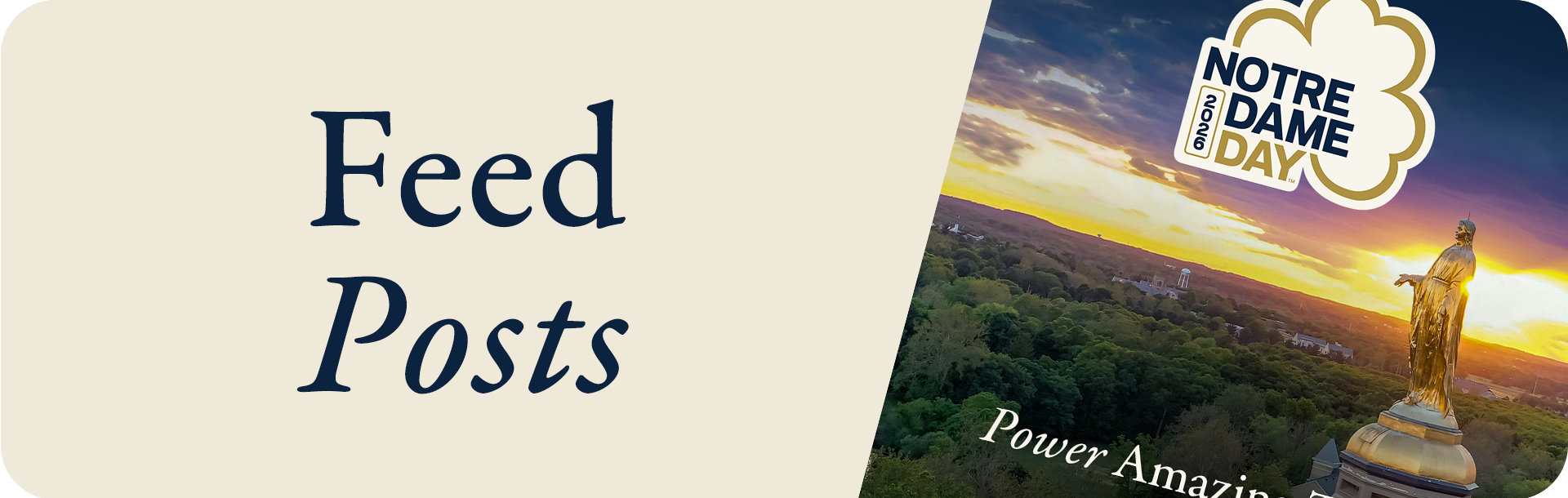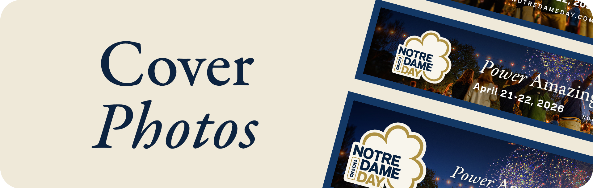 Share your love for the Fighting Irish at the forefront of your social media channels. We have three specially designed cover images optimized for LinkedIn, Facebook and X profile sizing. Use these cover photos and encourage others to join you in powering amazing things this Notre Dame Day.