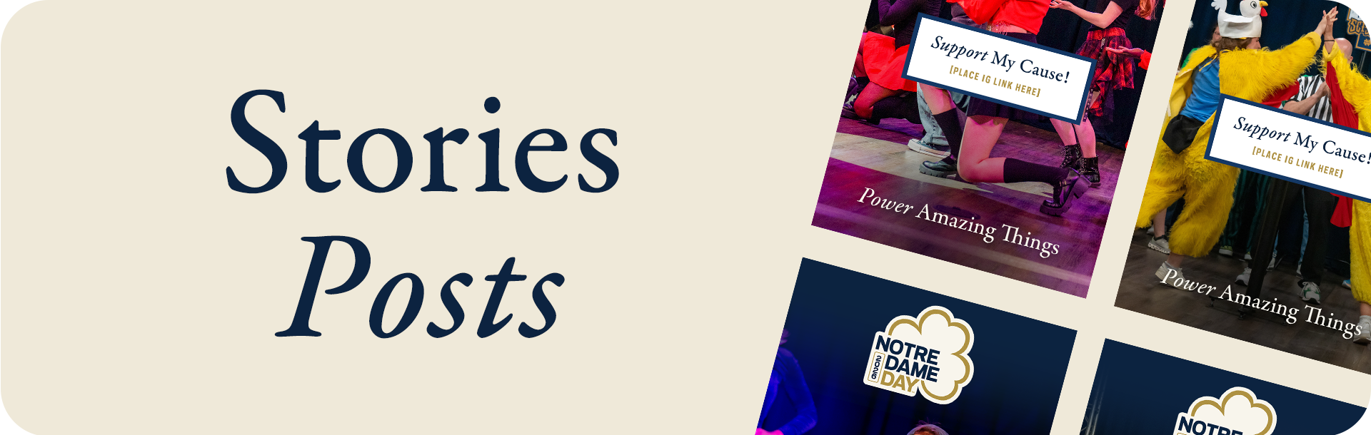 Elevate your social media stories with this set of vertical images and frames. The perfect way to highlight the people and causes you love in real time this Notre Dame Day.